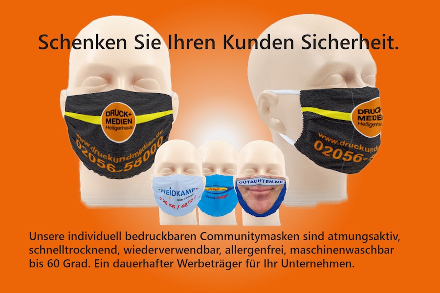 Corona macht erfinderisch - gerade in diesen Zeiten sind Alltagsmasken in vielen Geschäftsprozessen nicht mehr wegzudenken. Die Nachfrage an solchen Communitymasken ist enorm.