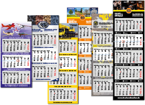 Wir produzieren 3-/4-/5-Monatskalender in verschiedenen Ausführungen, wahlweise im Digitaldruck oder im Offsetdruck.
